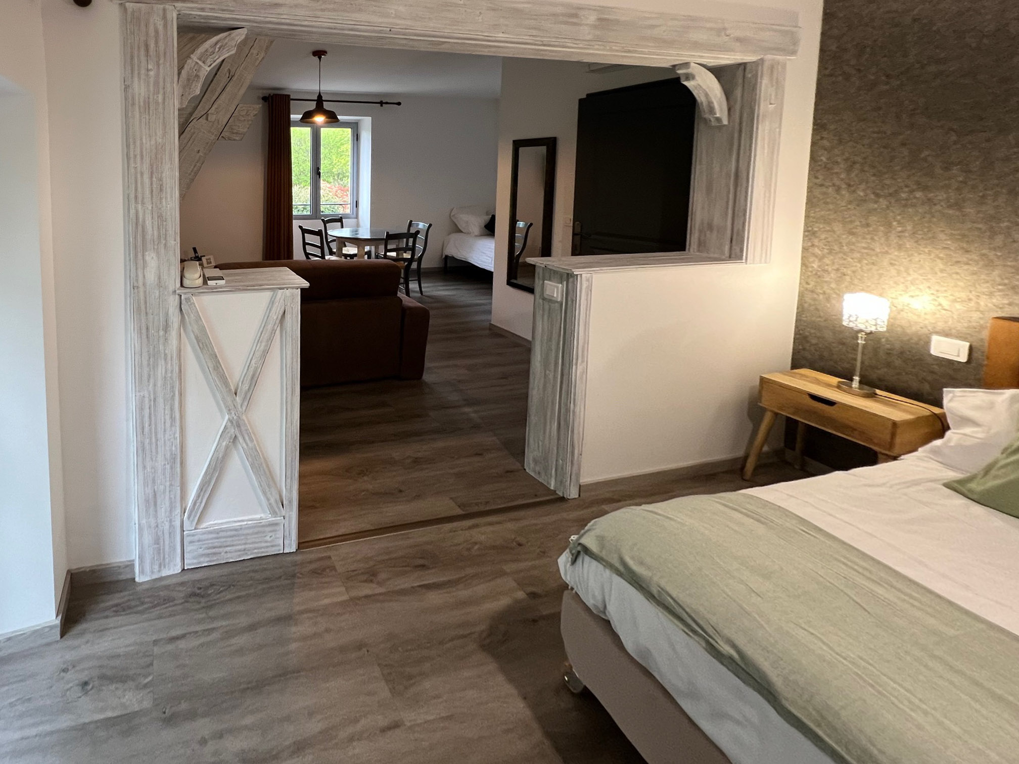 Nos chambres familiales disposent d'un lit double et de deux lits simples.